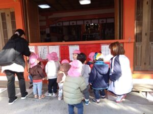 散歩車に乗って荒田八幡宮に初詣に行きました。