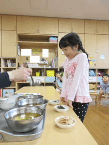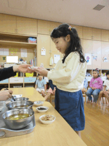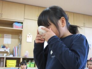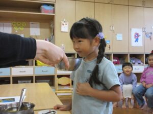 10月の食育はきりん組さんとお出汁の飲み比べをしました。