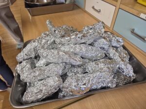 おいしい焼き芋になるように、新聞紙とアルミホイルで一生懸命包みました🍠